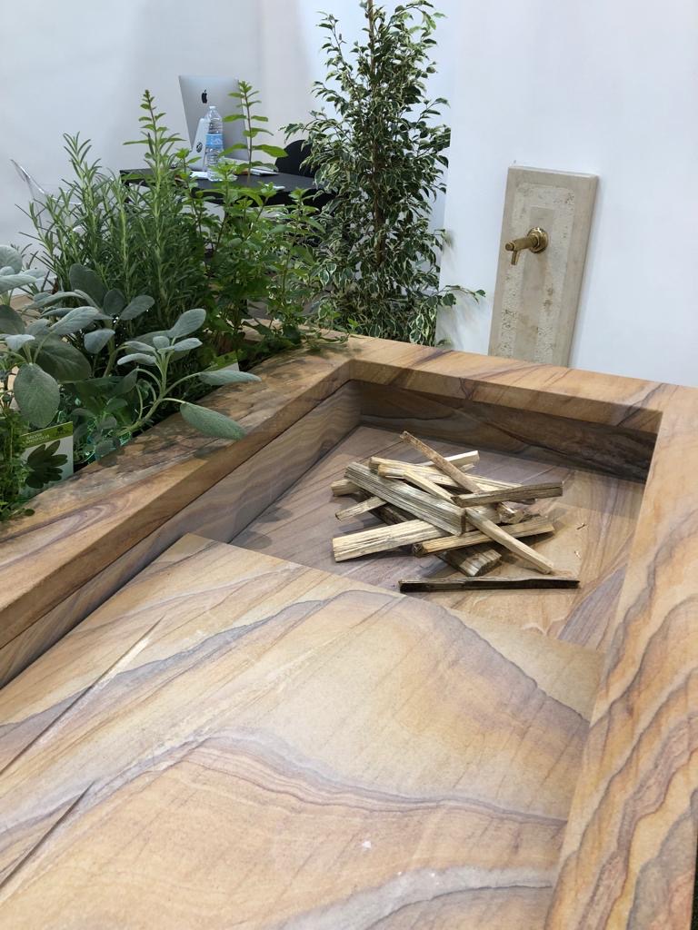 Sempre alla ricerca di una materia prima naturale per i nostri progetti… e Madre Natura ci ha regalato questa meraviglia…è nata ‘Marmo Caldo’ una cucina per esterni, ma anche per interni…